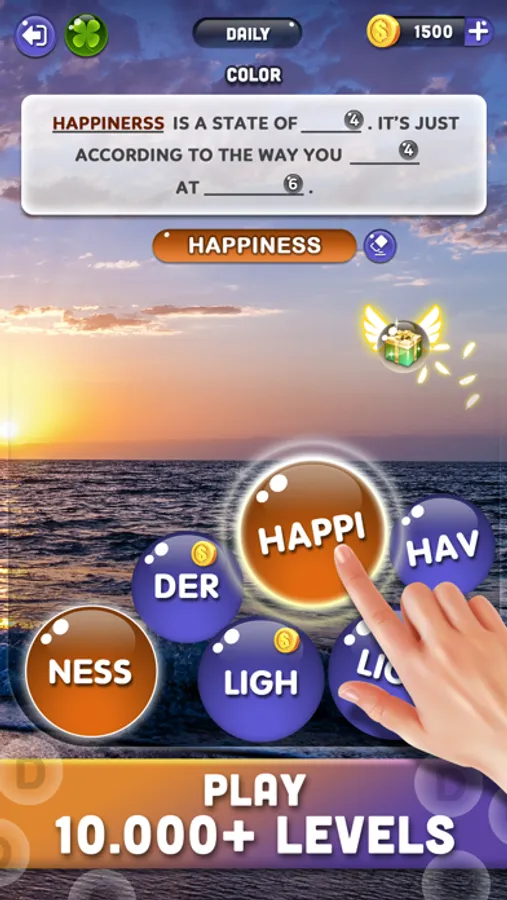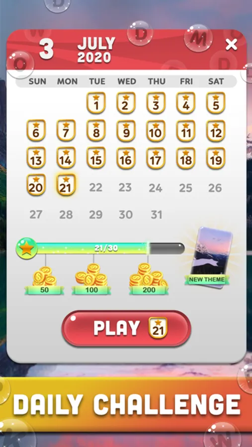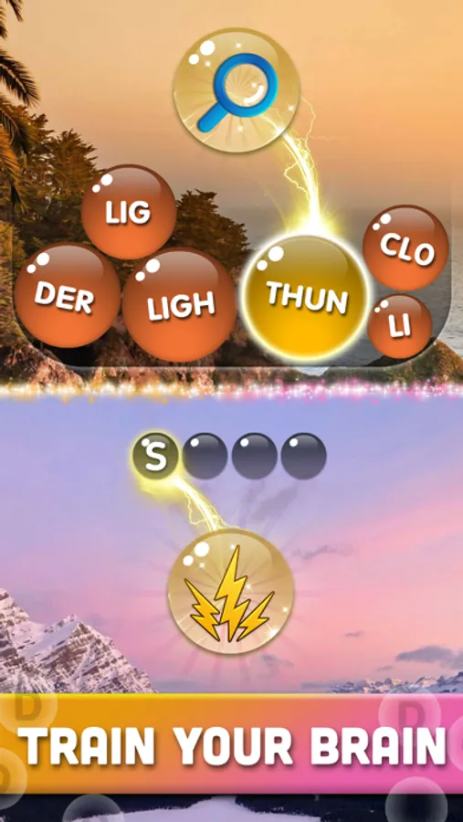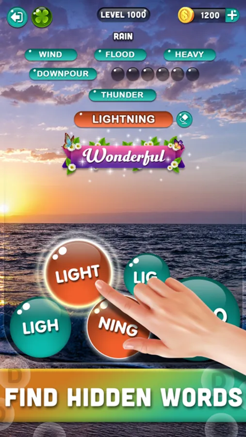 Swipe horizontally, up, down and diagonally to connect bubble letters and create specific hidden words.
