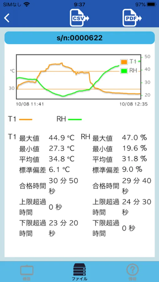 ●アプリのレポート機能でCSVファイルやPDFファイルを作成、保存することができます。