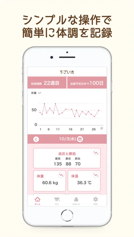 「うごいた - 妊婦さんの体調日記」は妊娠中の毎日の体調を記録し、セルフケアに役立てられる妊婦さん向け体調記録アプリ。