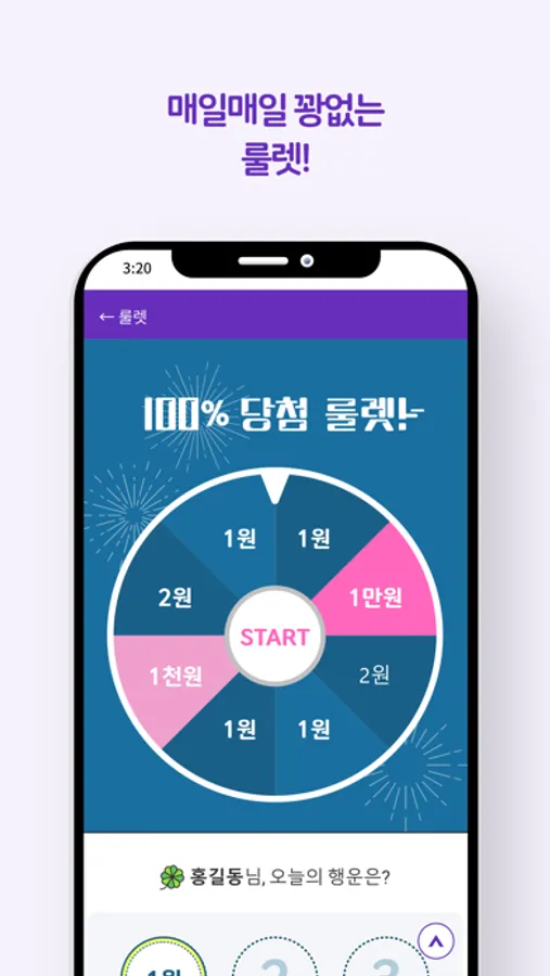 아무 조건 없이 매일 6번의 룰렛 기회, 지금 바로 1만원의 행운을 노려보세요!