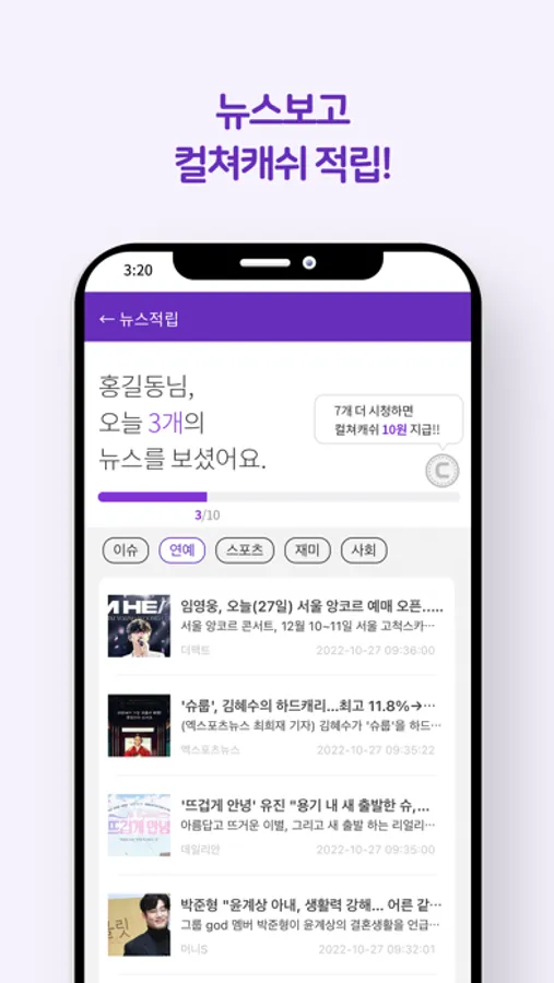 팔로잉, 구독, 뉴스, 클릭 등 쉽고 간단한 광고 참여로 컬쳐랜드 가맹점에서 현금처럼 사용 가능한 컬쳐캐쉬를 즉시 적립할 수 있습니다.