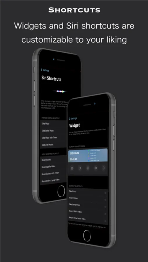 We focus on usability. The UI design lets you operate the app intuitively, and you can use Siri shortcuts and widget to launch the app quickly. Besides, MyCam can connect to Apple Watch. It makes Apple Watch show images on iPhone, start to take photos/videos, and change camera settings. We hope the combination of Apple Watch and iPhone make you enjoy taking photos and videos more than before.