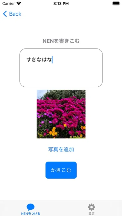 NFCにテキストメッセージと、写真データを紐つけることができます。