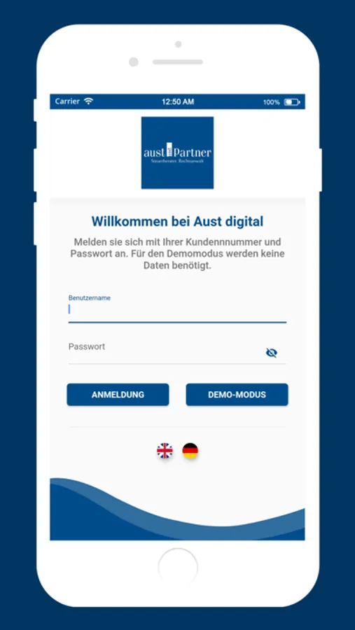 Voraussetzung für die Nutzung unserer Kanzlei-App sind die Zugangsdaten, die Sie von uns erhalten.