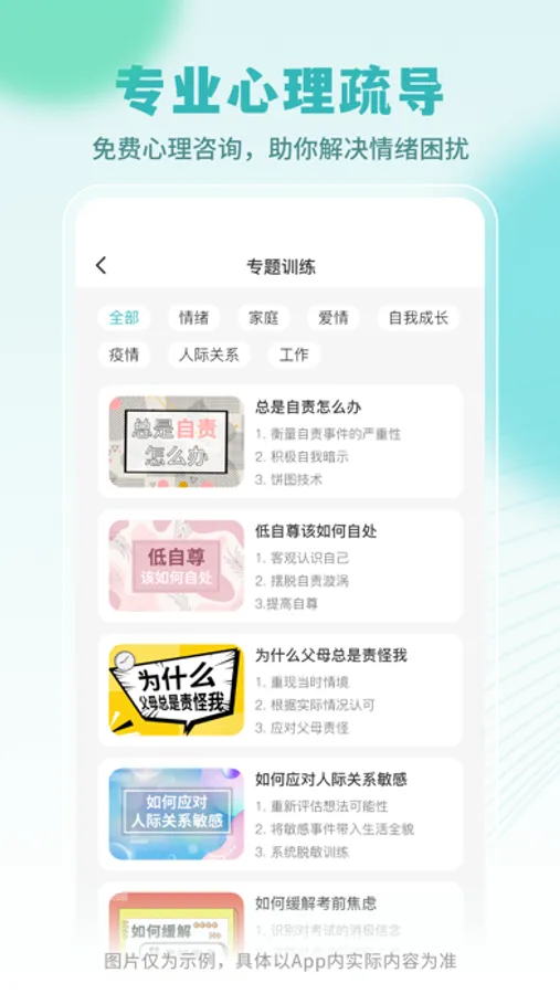 大自然白噪音、冥想练习、解压游戏等免费功能,随时随地帮你梳理思绪、缓解情绪、放松身心,进一步改善心理健康状况。