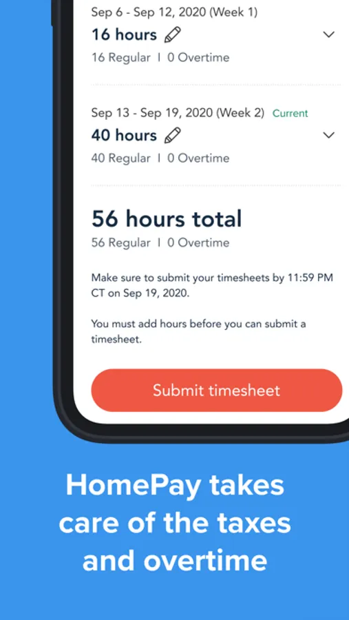 Time tracking has never been easier for nannies and caregivers. Track and submit your regular and overtime hours to your employer for payroll, all in the HomePay app.