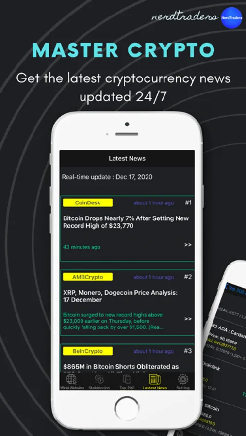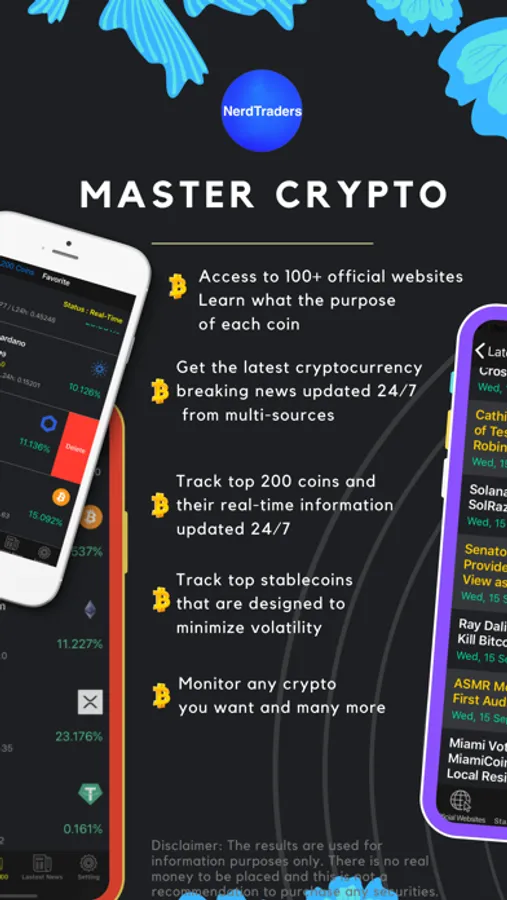 Master Crypto gives you access to more than 100 different coins, their official websites, who created them and the goal of each coin. It’s a great way to study crypto and learn more about every coin. Plus, you get cryptocurrency news 24/7.