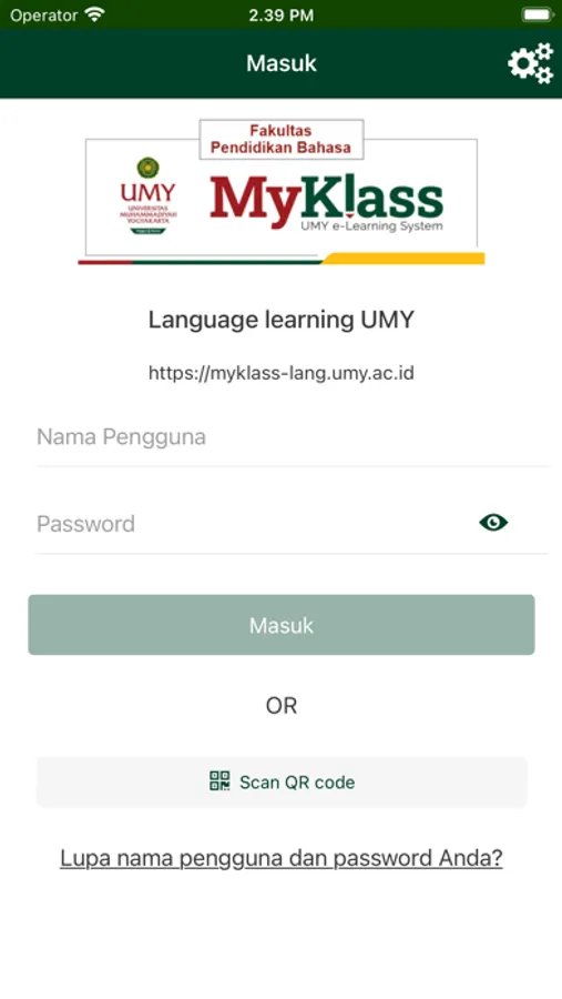 Aplikasi resmi MyKlass Fakultas Pendidikan Bahasa UMY untuk perangkat iOS