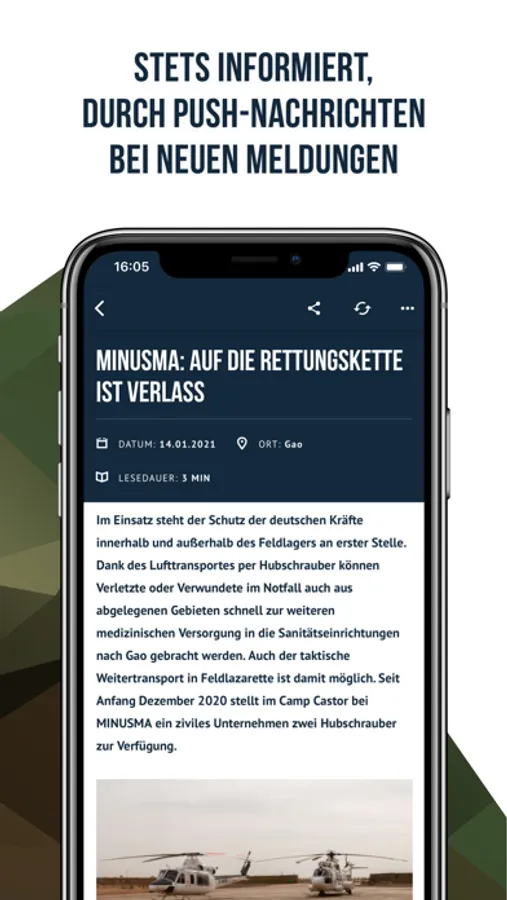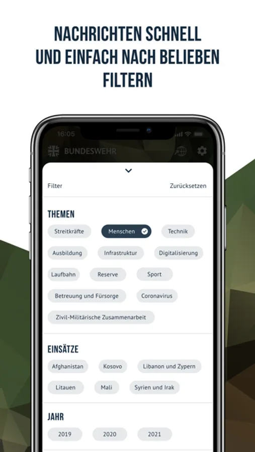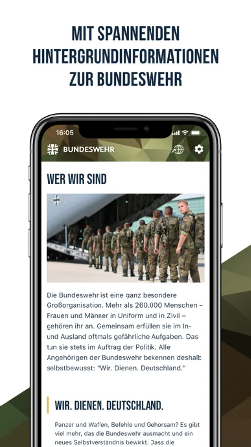 Durch die übersichtliche Gestaltung und Nutzerführung finden sich neue Bundeswehrinteressierte in der App ebenso leicht zurecht wie erfahrene Bundeswehrangehörige.