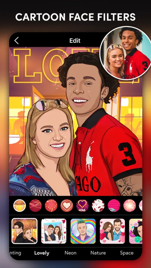 Join Instagram's coolest picture editing trend! With this hilarious toon art editor, turn yourself into an amazing caricature then choose the awesome toon me and anime filter you wish to finalize pics art editing! Prepare a superb new profile pic lab with a new profile picture editor and big heads for Instagram using the hashtag #BigHeadChallenge!