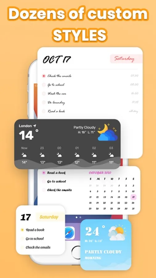 Choose from premade widget designs, or better yet, make your own custom and Add various widgets for your different needs.