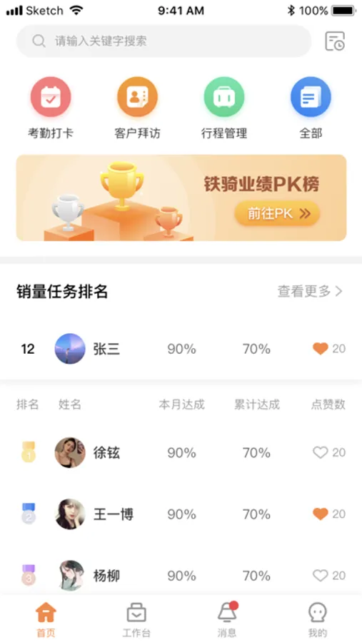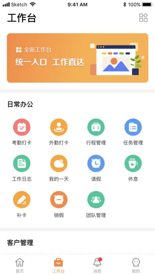 管理用户的考勤打卡、客户拜访、销量任务等日常工作。