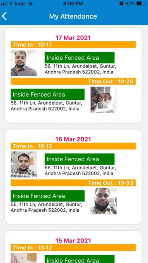 Geo Attendance is a smart monitoring tool to track the Staff Attendance along with geo-location and tagged with their photograph for field staff as well as on-site support staff. This online mobile attendance system is also known as a Touchless selfie attendance system.