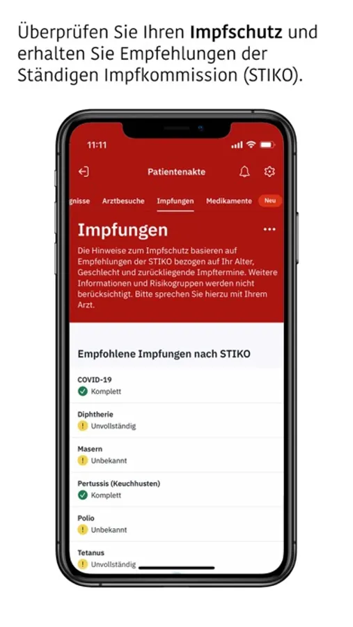 - Überprüfung Ihres Impfschutzes inklusive Empfehlung der Ständigen Impfkommission (STIKO)