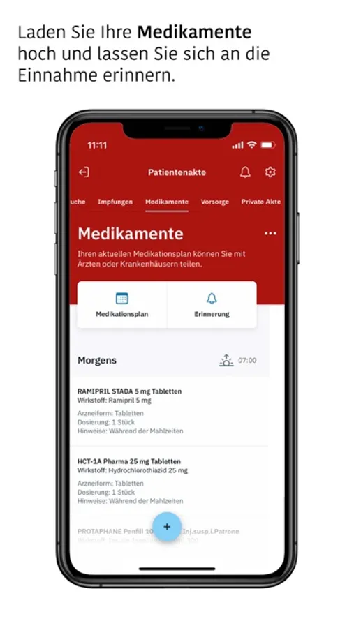 - Medikamente hochladen und Einnahme im Blick behalten