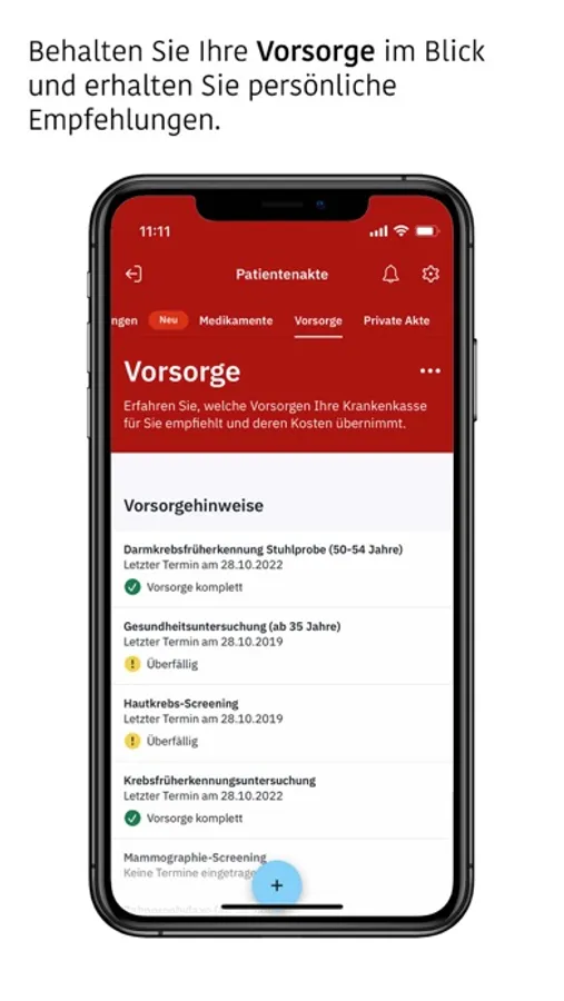 - Informationen zu Ihren persönlichen Vorsorgeempfehlungen