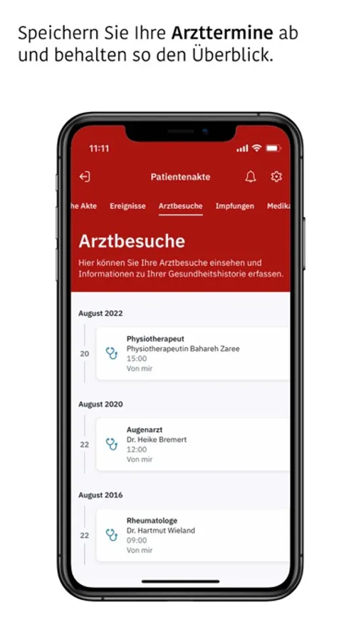 - Arztbesuche einsehen und Überblick behalten