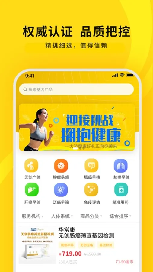 【基因检测】在这里,从趣味性的个人特质基因,到疾病风险的预测,再到肿瘤早筛,你都可以通过基因检测实现。我们突破种类的限制,致力于把4000余种疾病风险检测一网打尽,并由专业人员为您进行报告解读。