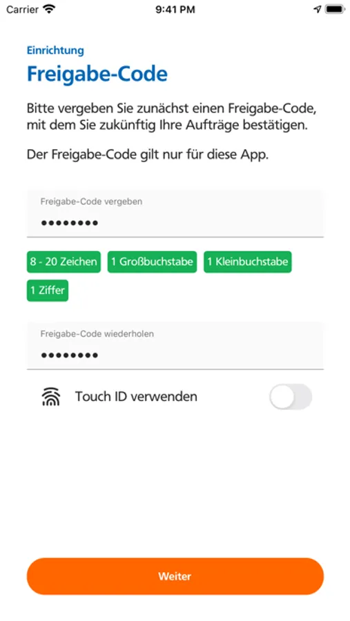 Um ein hohes Maß an Sicherheit zu gewährleisten, erfolgt die gesamte Kommunikation verschlüsselt. Die Ausführung von Transaktionen ist mit Ihrem selbstgewählten Freigabe-Code oder per Touch-ID/Face-ID gesichert.
