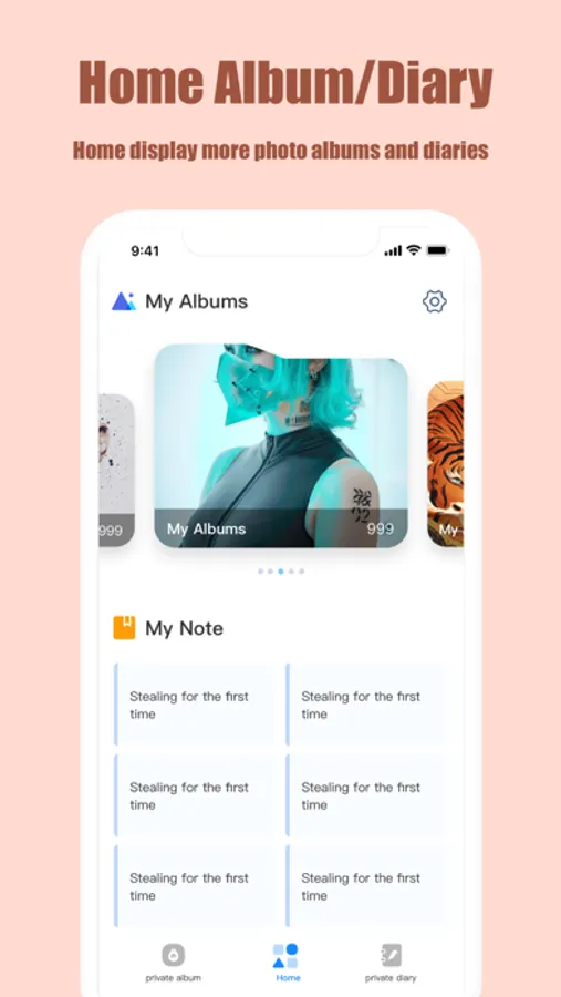 Using the notebook function, you can write any information and hide it in this application. Such as password, contact information, website, etc.