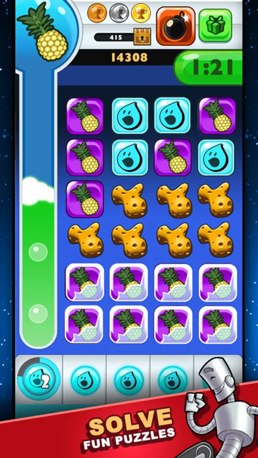 B27 and Friends have arrived! Battle the clock. Power up before time runs out. Shift cubes around the board and set up huge combos for the win. Unleash the WaterKing Beam to blast through the X-Tiles that get in the way. Collect XP points to earn free store items. Earn 100’s of Medals. Boss battle with Orange Agents. Save the Space Critters! Experience the puzzle arcade game like no other. Fun, free, and challenging gameplay!