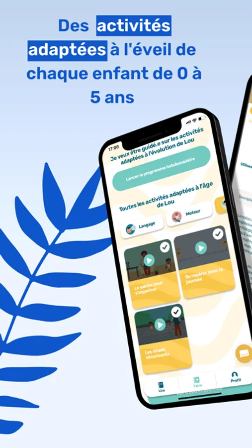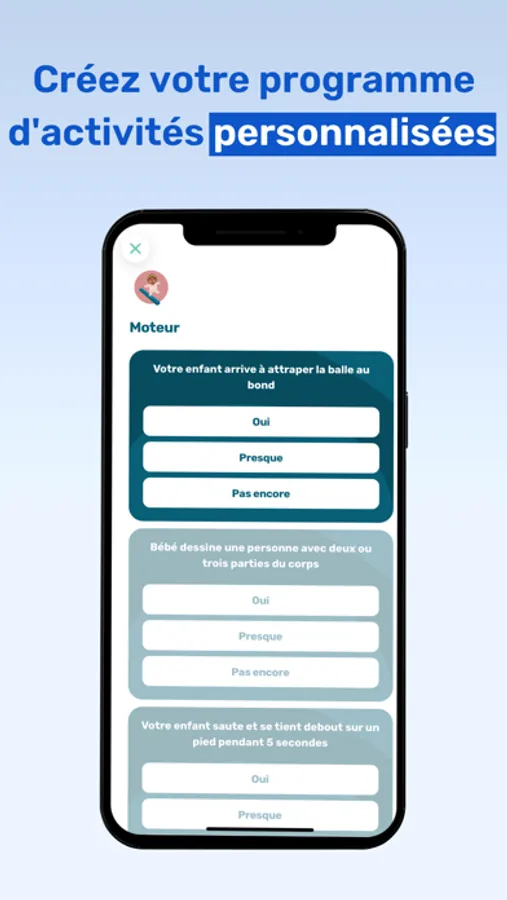 Un programme d’activités simples et ludiques construites par des professionnels (orthophonistes, coachs parentaux, puéricultrices …) et adaptées au développement individuel de votre enfant
