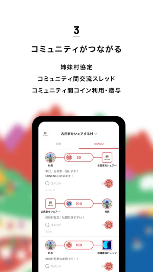 "姉妹村"として複数のコミュニティをつなぐことができます。