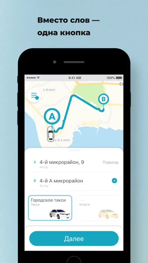 Откройте приложение, укажите адрес и закажите такси, нажав на одну кнопку.