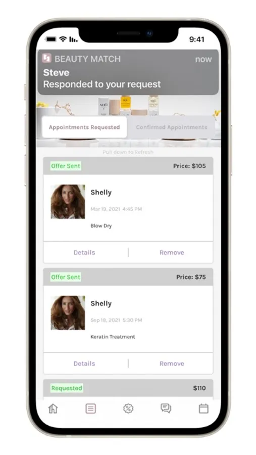 Beauty Match by Centred allows you to easily search, browse, and book the work of top beauty and fitness professionals in your area, while also notifying you of last-minute specials.