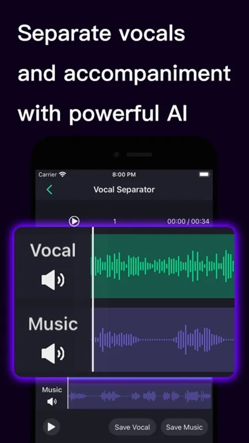 Our app uses powerful AI capabilities to separate vocals and accompaniment in music.