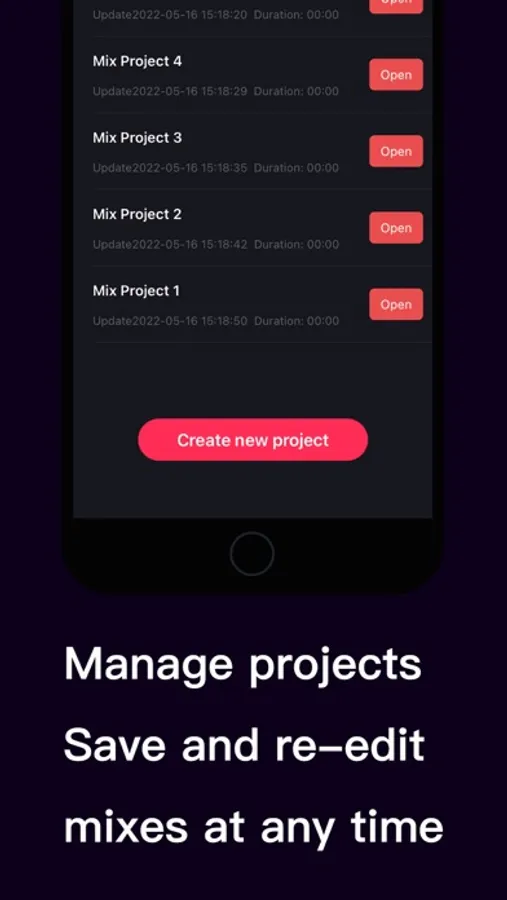- Audio mixing project management: save and re-edit audio at any time.