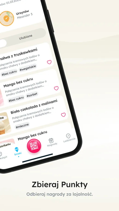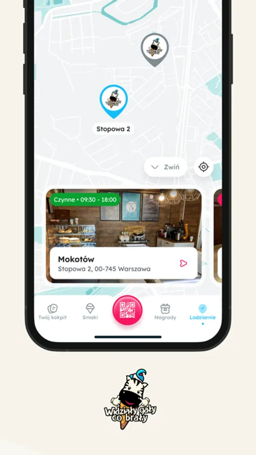 Aplikacja Warszawskiej lodziarni "Widziały Gały Co Brały". Zbieraj punkty za zakupy, wymieniaj na nagrody, sprawdzaj aktualnie dostępne smaki w lodziarniach.