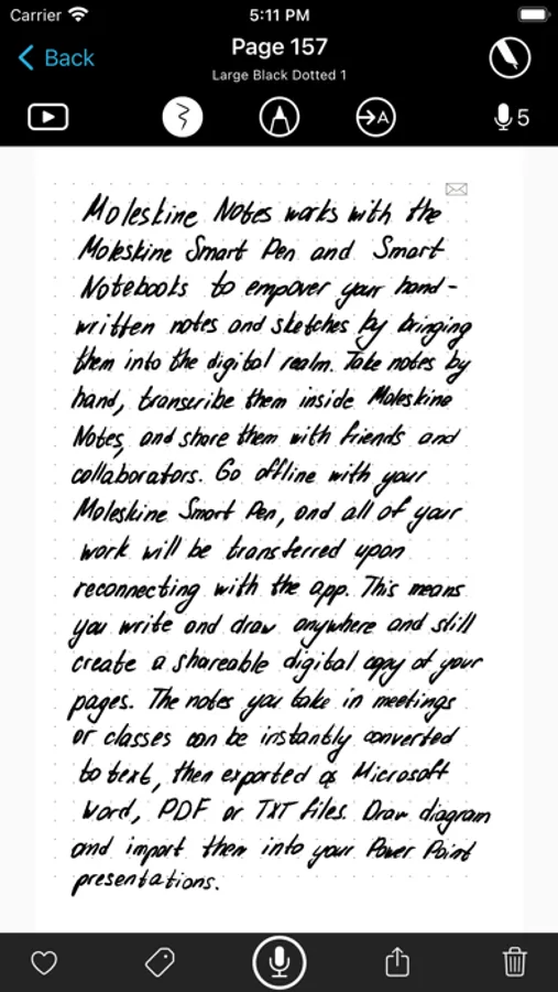 Moleskine Notes works with the Moleskine Smart Pen and Smart Notebooks to empower your handwritten notes and sketches by bringing them into the digital realm. Take notes by hand, transcribe them inside Moleskine Notes, and then share them with friends and collaborators. Go offline with your Moleskine Smartpen, and all of your work will be transferred upon reconnecting with the app. This means you write and draw anywhere and still create a shareable digital copy of your pages.