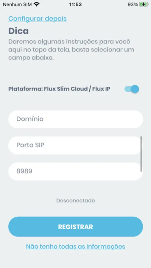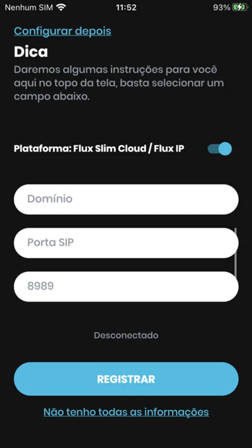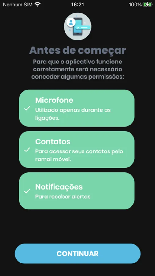 Atenção: Para provedores SIP em geral os usuários poderão realizar chamadas normalmente. A recepção de chamadas só é possível com o aplicativo aberto.