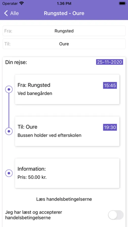 Brug Frank A. Busser appen til at finde den ønskede bus rute og derefter book og betal