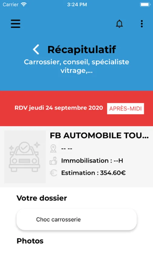 Cette estimation prend la forme de deux à trois devis estimatifs personnalisés selon les taux horaires des ateliers de carrosserie géolocalisés autour du lieu de demande.