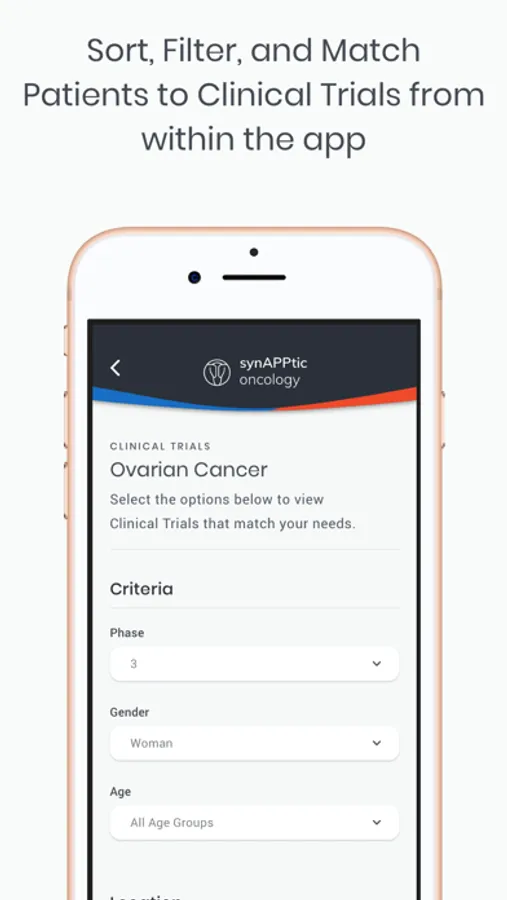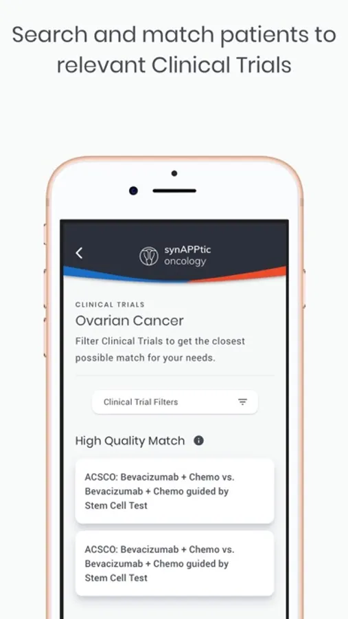 Finally, the identification of appropriate clinical trials is an increasingly complex process. SynAPPtic Oncology has transformed this paradigm by developing a proprietary clinical trial matching algorithm that will permit both patients and clinical providers to rapidly filter through accessible trials, identifying potential options...ultimately advancing the science and improving our patients' lives is dependent on the discovery of novel, effective treatment strategies."