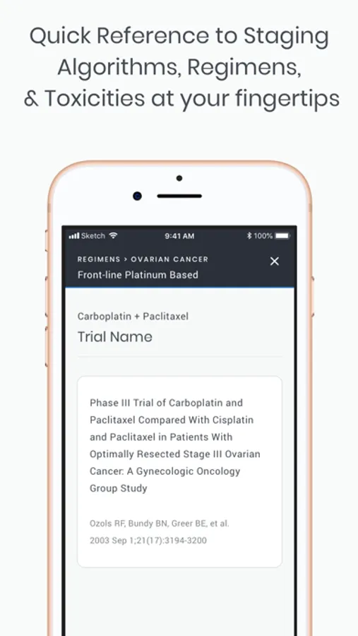 This application provides information regarding appropriate disease related chemotherapeutic regimens, but also provides appropriate links to clinical trials informing management decisions.