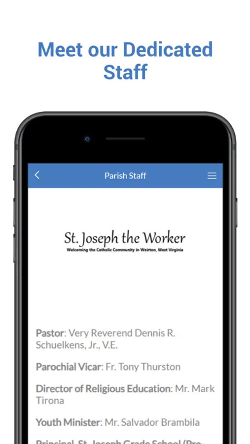 Baptized into Jesus Christ, and guided by the Holy Spirit, we are a Catholic community united with the local Bishop and our Catholic brothers and sisters in the Diocese of Wheeling-Charleston. We worship the Father, Son and Holy Spirit through personal and communal prayer, through the proclamation and living the Gospel, through the weekly Sunday celebration of the Eucharist and the other Sacraments of the Church, and through our charitable outreach to those within and beyond our parish boundaries. We, therefore, commit ourselves through mutually sharing our time, talent and treasure to welcome all who gather here, to provide and support Catholic Education through our Catholic Schools and Religious Education programs for all ages, to work together for the spiritual care of one another and the maintenance of the material goods that have been entrusted to us. St. Joseph the Worker, pray for us.