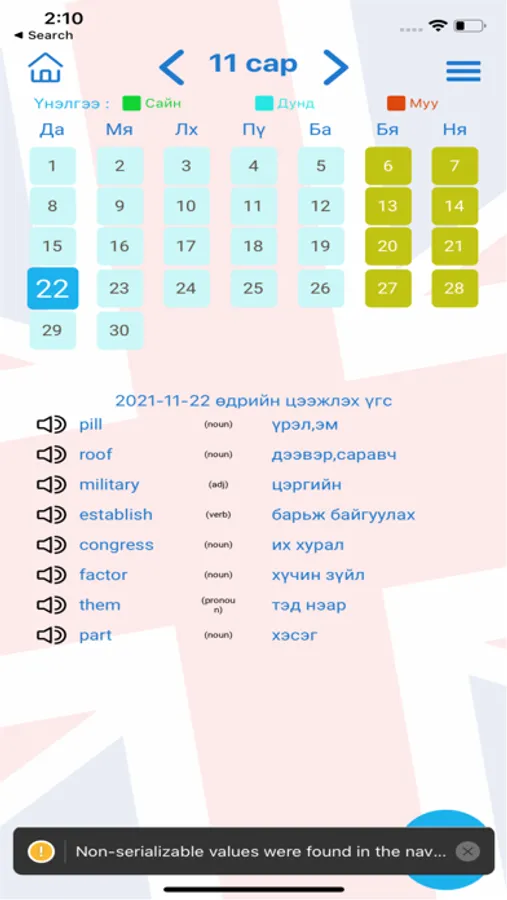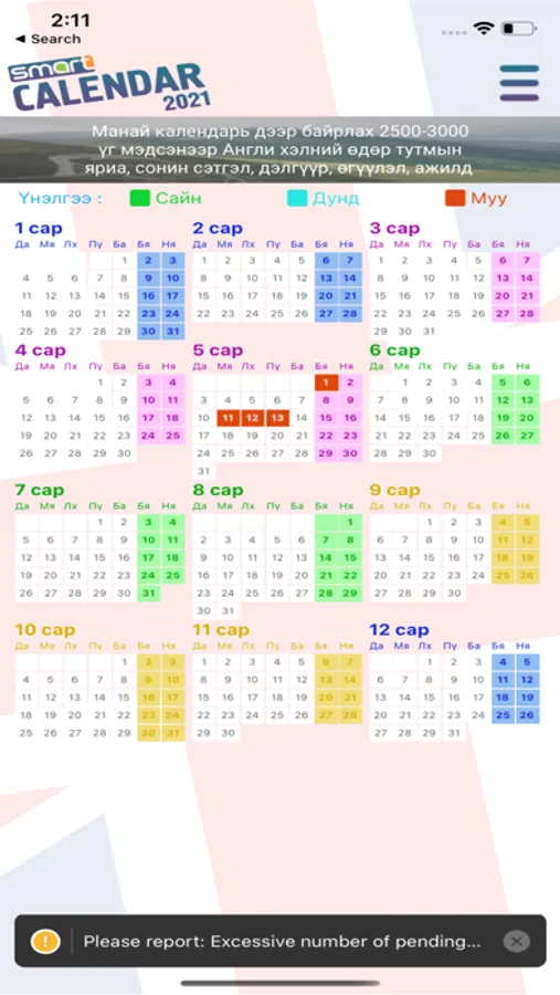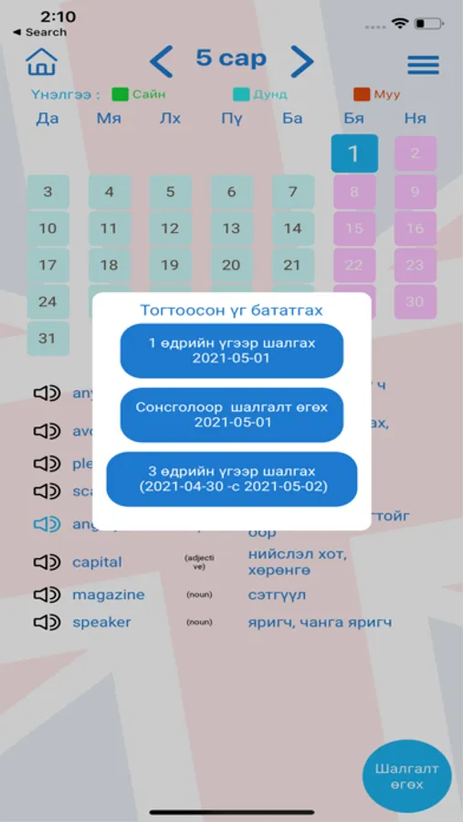 Энэхүү смарт календарь дээрх 2500-3000 үг мэдсэнээр Англи хэлний өдөр тутмийн яриа, сонин сэтгүүл, дэлгүүр, өгүүлэл, ажилд ашиглахад 90% ойлгож чадна.үлдсэн 10% агуулга, асуултаар ойлгох болно.Та өдөрт 8 үг жилд 3000 гаруй шигшмэл үгийг цээжилнэ