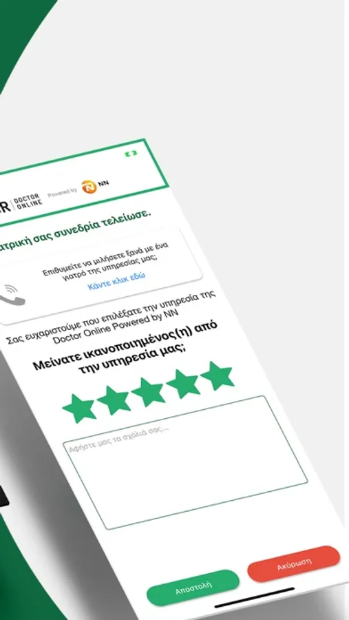 - Στο τέλος της ιατρικής τηλεσυνεδρίας, θα λάβετε στο e-mail σας ένα PDF με συστάσεις από τον ιατρό.