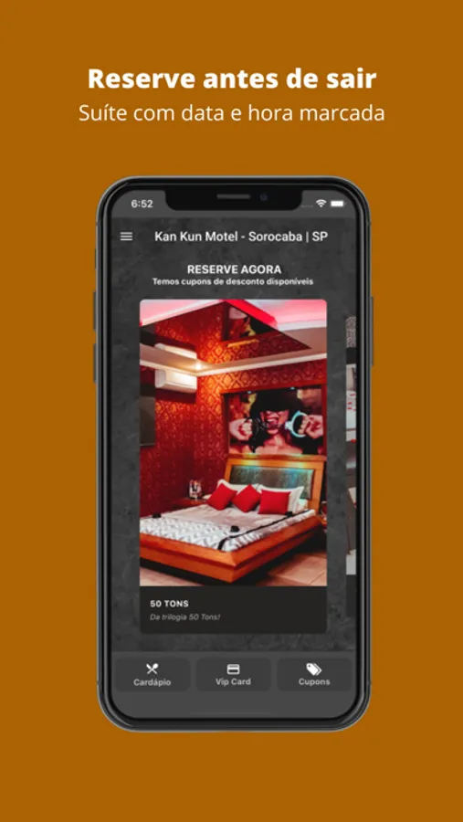 Baixe nosso App, faça seu cadastro e ganhe um crédito para utilizar na sua primeira reserva. Ir ao Kan Kun Motel nunca foi tão fácil. Você reserva a sua suíte antes de sair de casa, do trabalho ou da balada, acumula descontos para utilizar na sua próxima estada e muito mais.