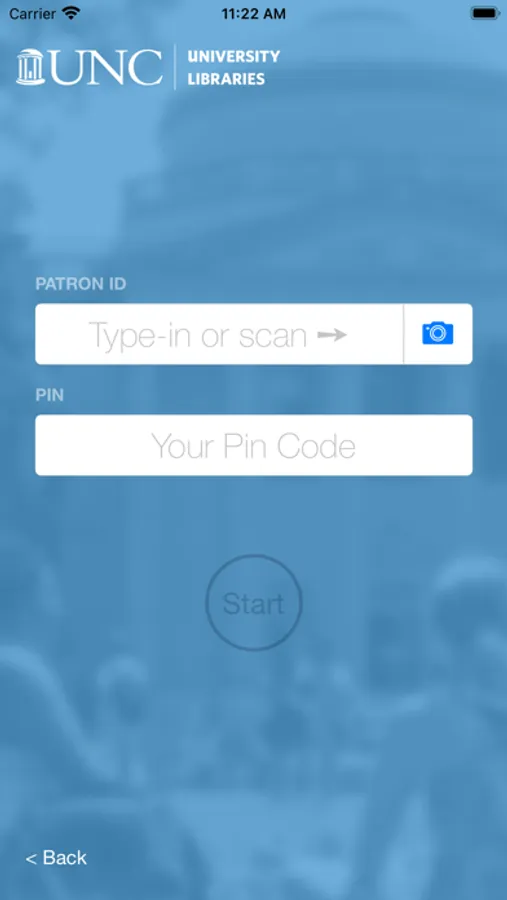 The UNC University Libraries Self-Checkout App requires an UNC ONYEN and password.
