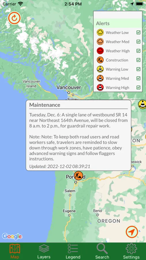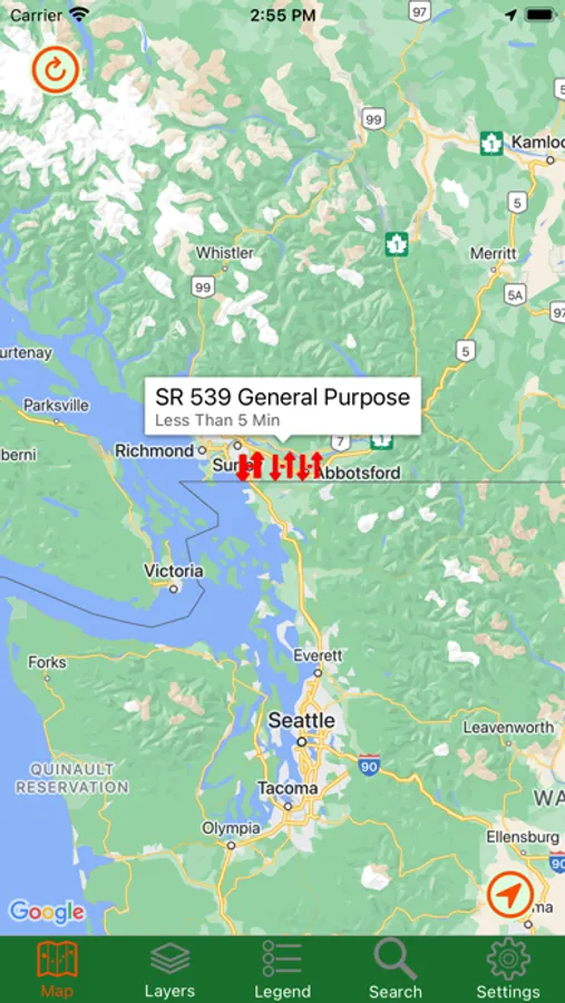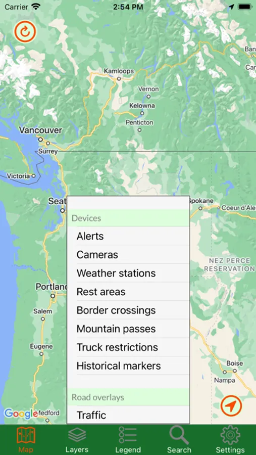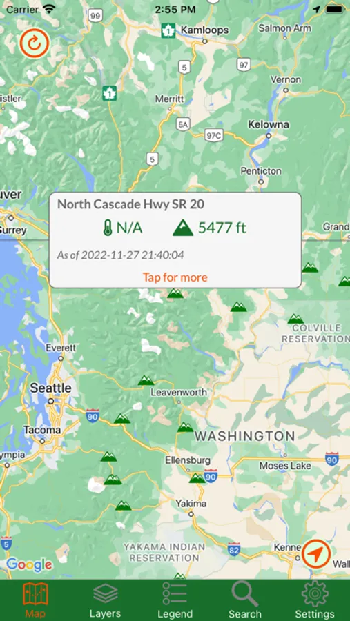 Know before you go. Whether you're a commuter or a recreational traveler, you need information about the road ahead. By accessing Washington Department of Transportation road data, you can view traffic cameras, read alerts about construction and other road-related issues, get stats from weather stations. Also available is Google Traffic, just so you have all the data in one app. Be smart, be informed.