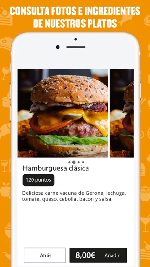 Descarga nuestra app móvil: descubre nuestra deliciosa carta de platos y consulta nuestras fotos, ingredientes y alérgenos.