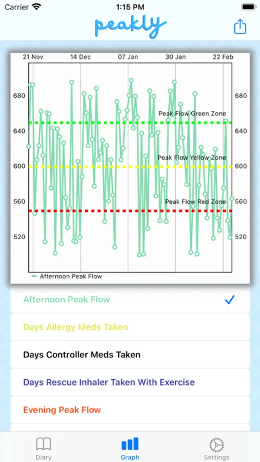 peakly is the premier diary dedicated to tracking your asthma, COPD and allergy symptoms, as well as, your general lung health. Log information including:
