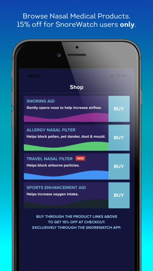 Customers also have the ability to shop Nasal Medical's Discreet Snoring Aid from the App.