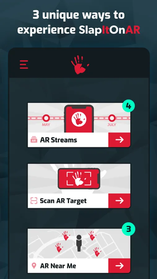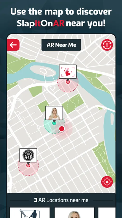 SlapItOnAR is an augmented reality browser that allows you to experience AR elements and exclusive SlapItOnAR content such as video messages, 3D imagery, rewards and interactive content.