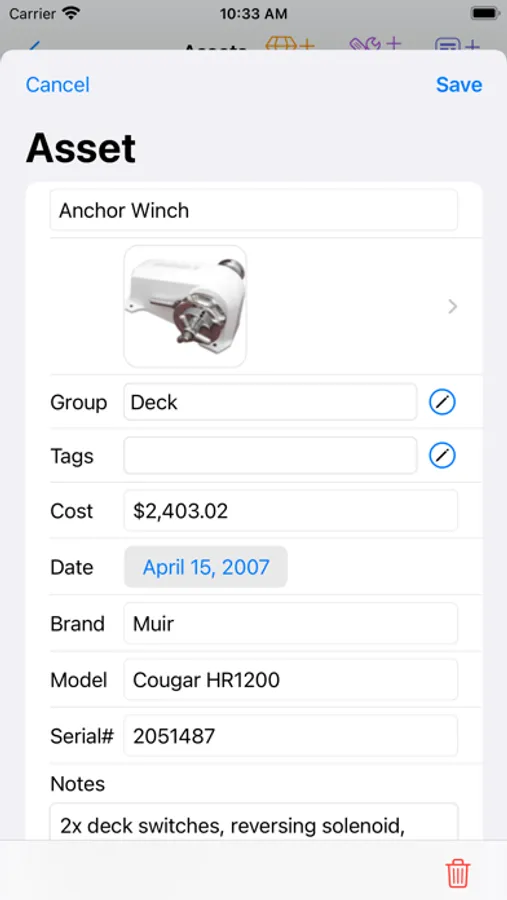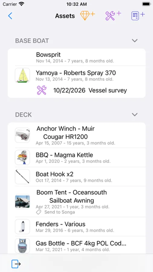 Assets On The Go is a simple to use asset management tool that helps keep track of your valuables and to help manage the maintenance of those assets. We built this app to keep track of our yacht's fixtures, fittings and contents, for insurance purposes. It could also be used for an RV, caravan, or even your home. Anything really. Works best on iPad or Mac.