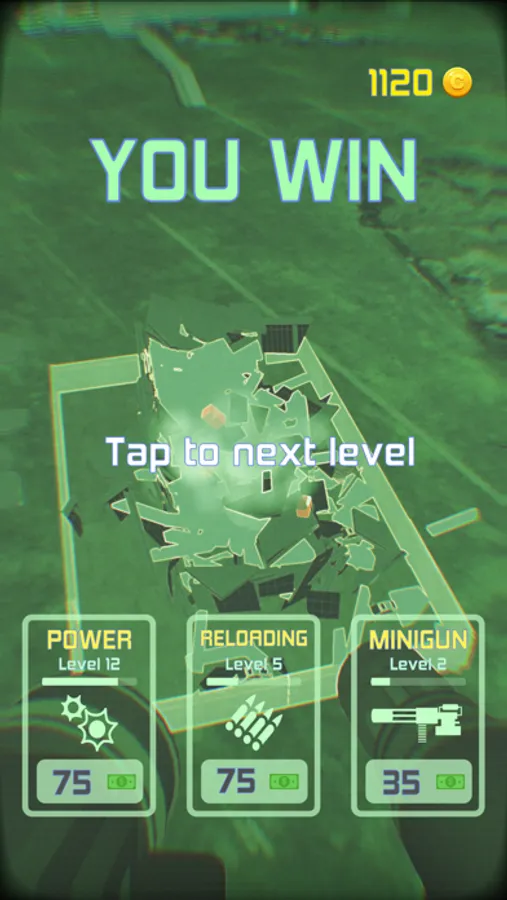 Destroy buildings from warplane, by bazooka or minigun.
